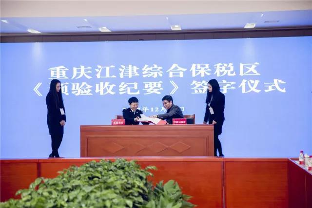 預(yù)驗(yàn)收工作結(jié)束后,江津區(qū)人民政府與預(yù)驗(yàn)收小組牽頭單位(重慶海關(guān))簽署了《重慶江津綜合保稅區(qū)基礎(chǔ)和監(jiān)管設(shè)施預(yù)驗(yàn)收紀(jì)要》。